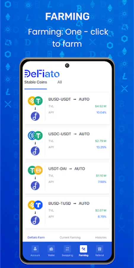 DeFiato is the next-generation centralized platform for DeFi staking, yield farming and financial services. Our mission from the start has been to remove barriers and give normal users the same ability big players have to support their favorite blockchain projects, while earning rewards at the same time.