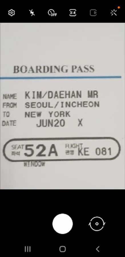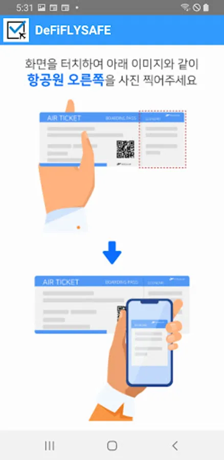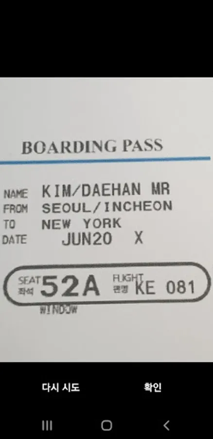 메인 화면에서 비행기 티켓비행기 항공권 사진 찍어 OCR 인식하여 이벤트 구매