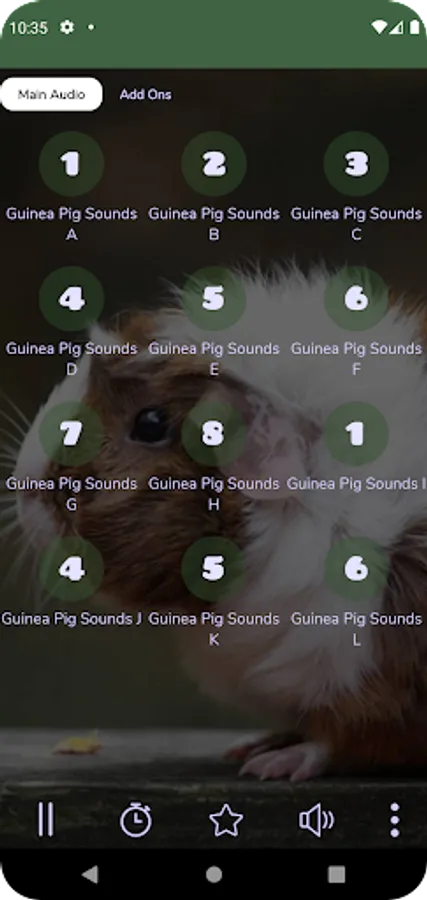 This application containing the best collection of guinea pig sounds for android devices. Sounds have been selected very carefully to be a good and fun user experience, we hope you will enjoy using the app and listening to guinea pig sounds