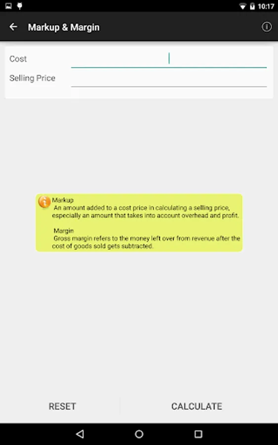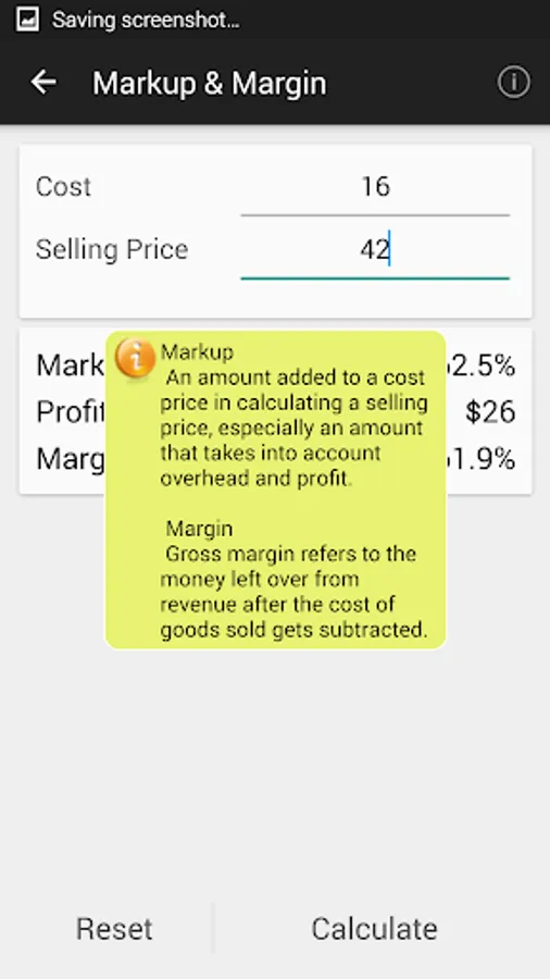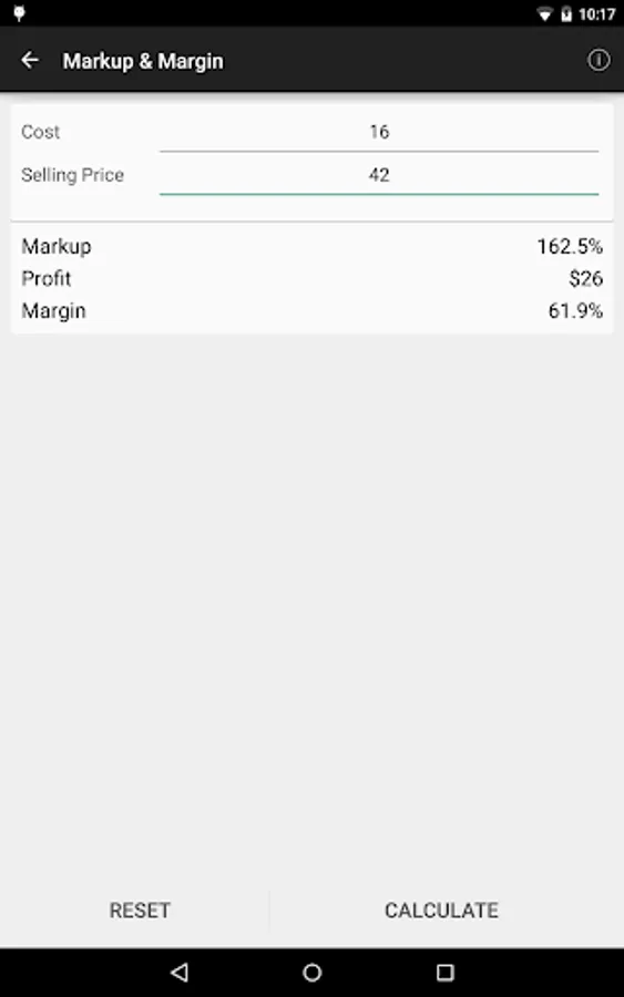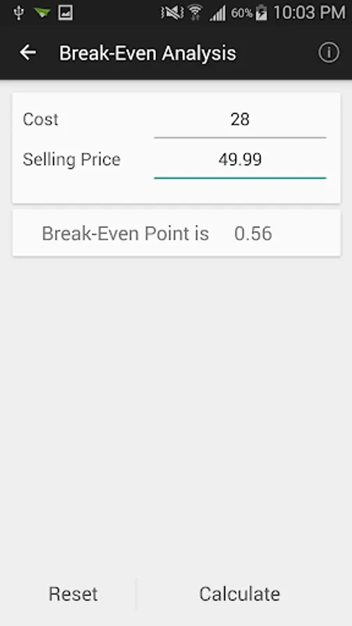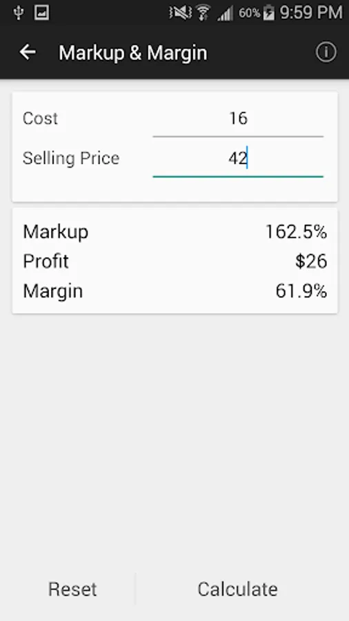 This is a handy tool to have in your phone. At anytime you can use this app to figure out margin, profit, etc.