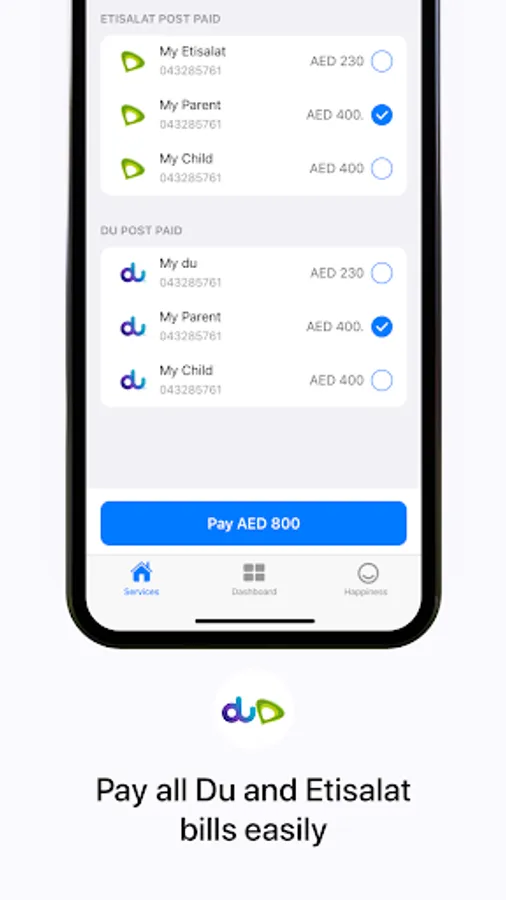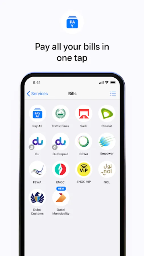 Pay your DEWA, Etisalat, Du, FEWA, Empower and Dubai Municipality bills and fees