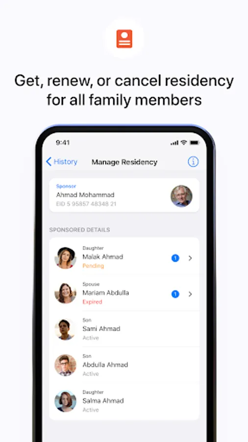 Get, renew, or cancel residency sponsorship for your direct family dependents