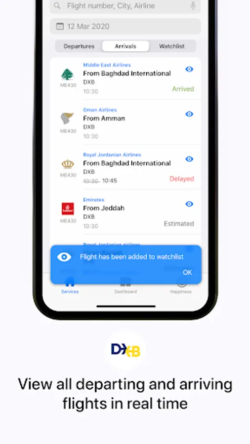 Check real time flight information from Dubai Airport and watchlist flights of interest.