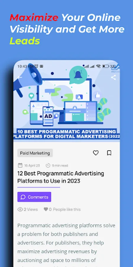 Focus on digital marketing in an easy, effective and fun way. View various articles daily and share your experience with your friends and the marketer’s community