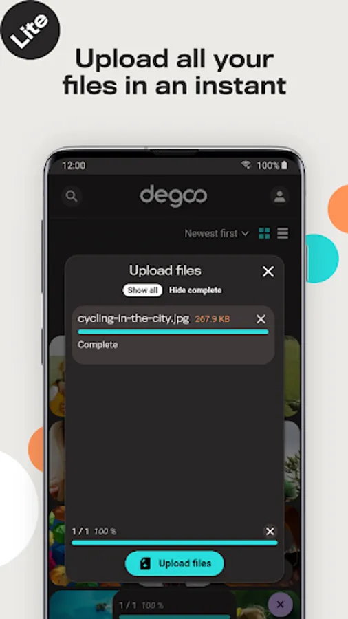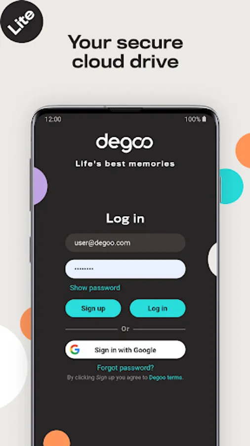 Back up your data directly from your device. Choose what you want to backup, like your photos or docs and we store it all securely in Degoo's cloud drive. Degoo allows you to bring all your photos, videos, music and documents anywhere. Store and share your files free forever with Degoo, the ultimate cloud drive for your mobile phone or tablet.