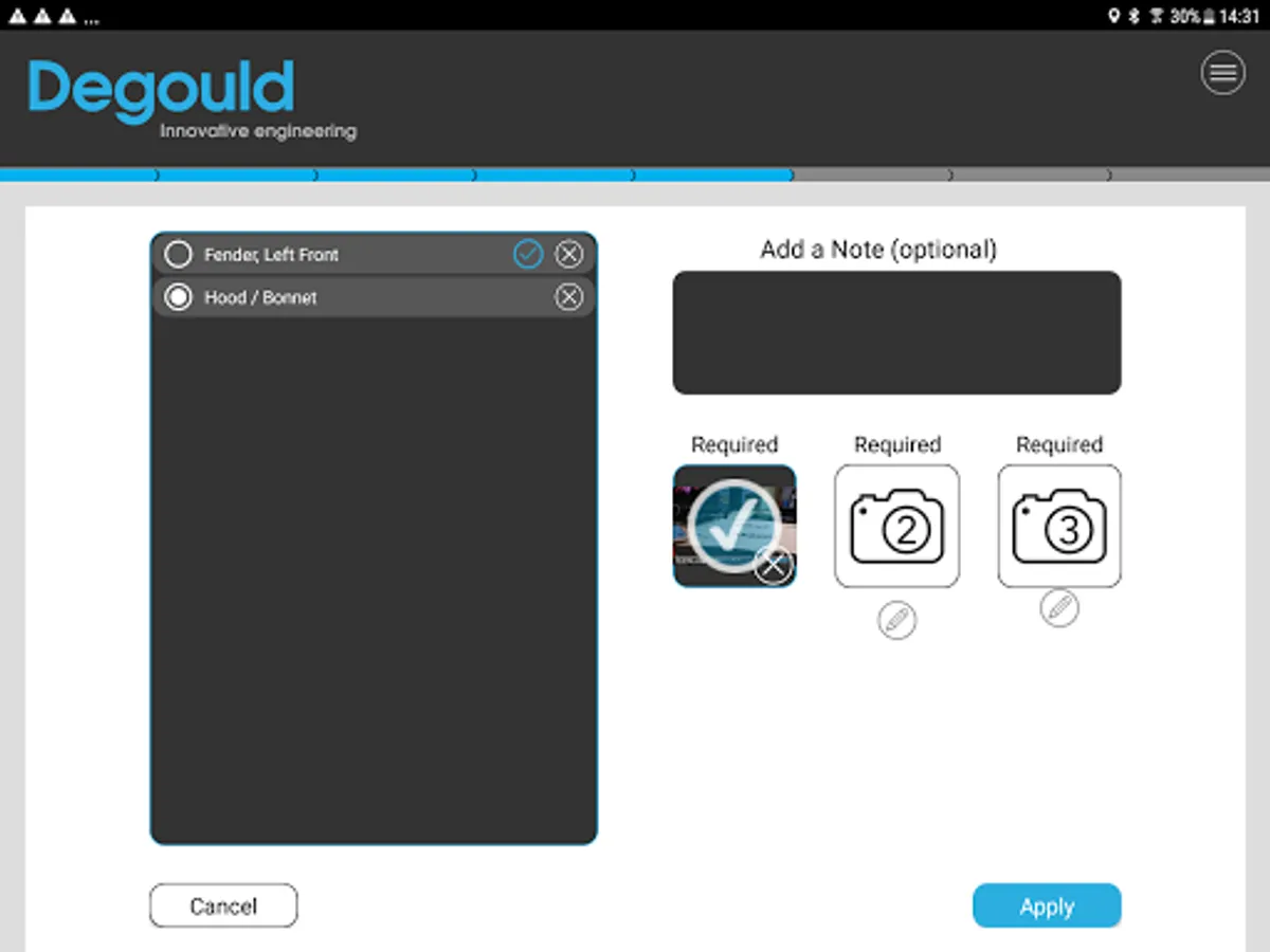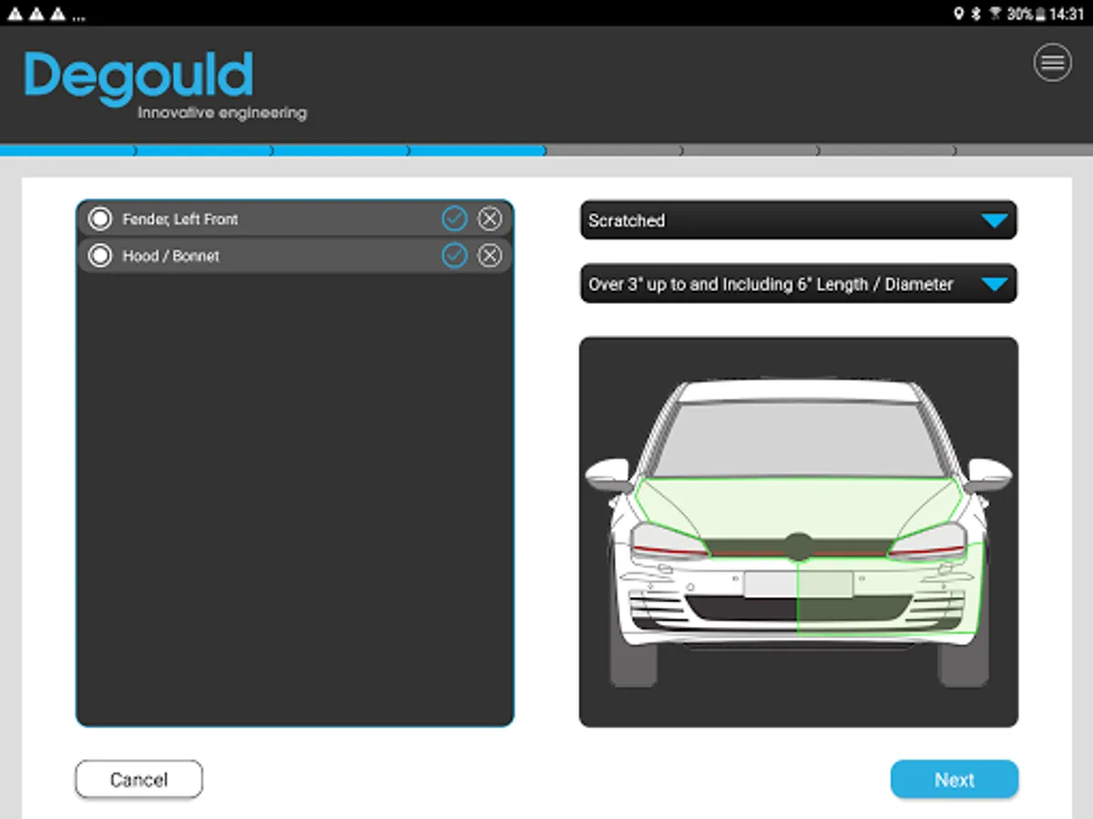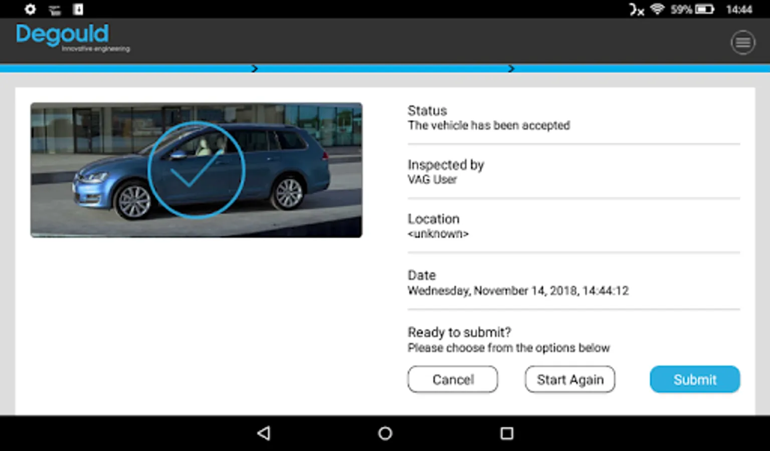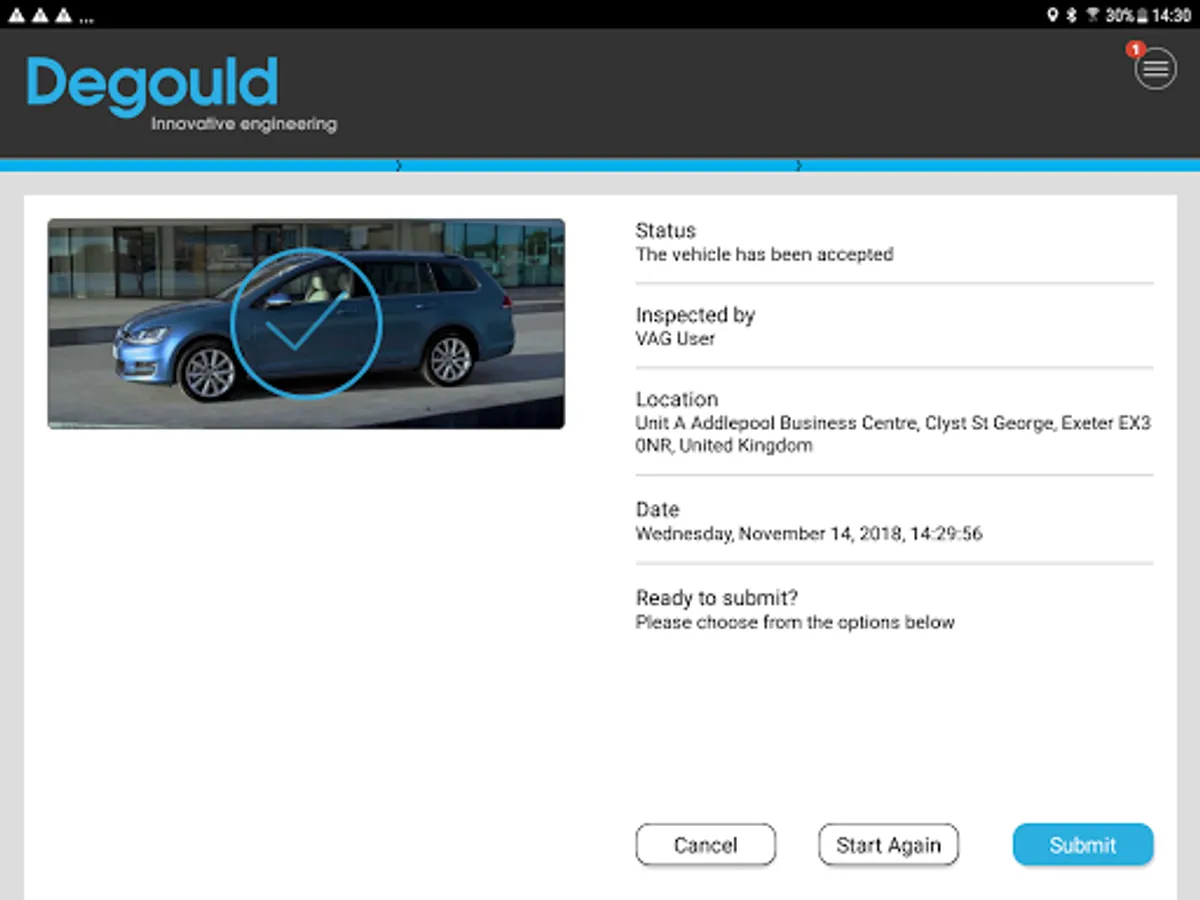 Our new software and mobile application has been designed for vehicle dealerships to conduct electronic vehicle inspections upon receipt of a vehicle, enabling them to either accept its condition or raise an exception through the app. Its user led and guided system drastically speeds up and assists the claims handling process and the system can interface into claims handling or internal systems.