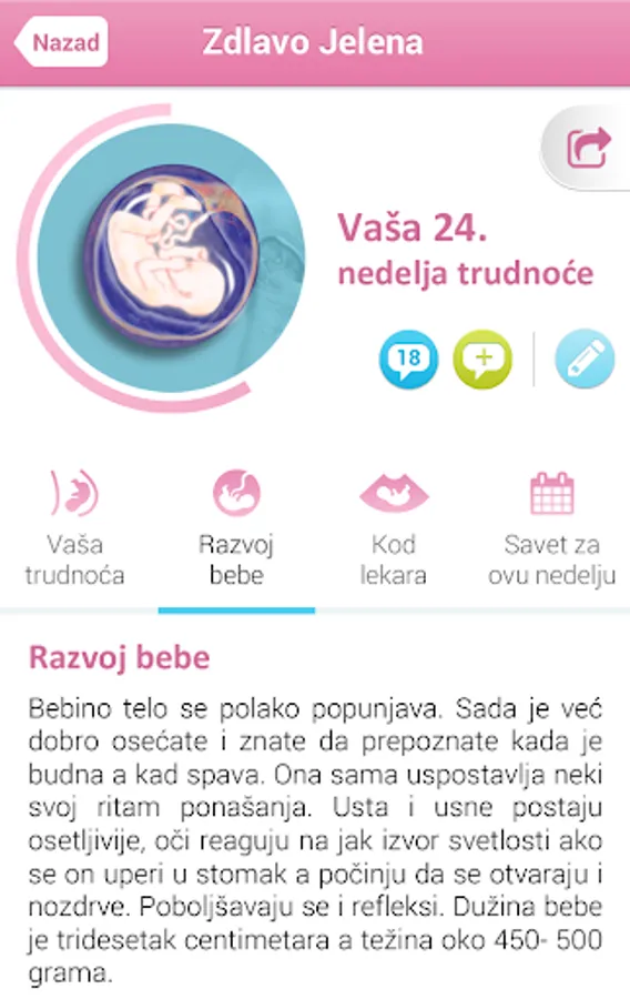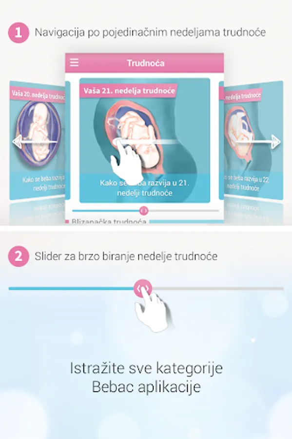 With the help of Bebac applications can track the progress of pregnancy week by week, and after childbirth continue to follow the development of your child until age seven.