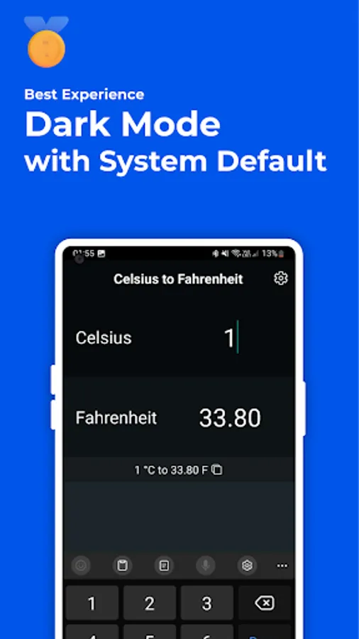 - Touch celsius input box, enter number and convert to fahrenheit