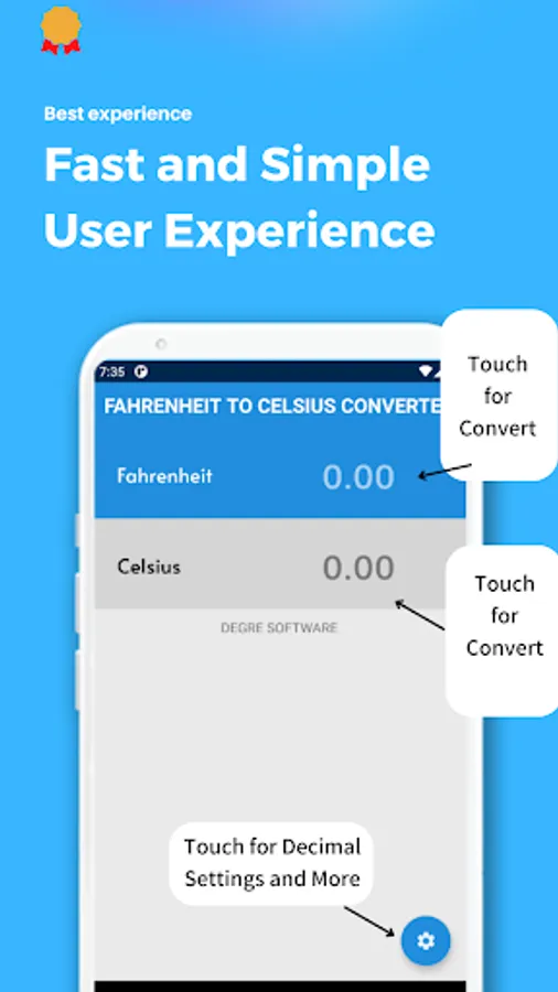 Fahrenheit to Celsius is a super fast and very simple one by one temperature unit converter and calculator app. You can simply to convert Celsius (°C) to Fahrenheit (°F) or Fahrenheit to Celsius