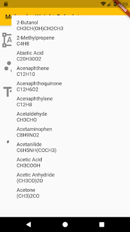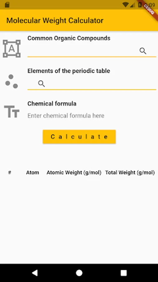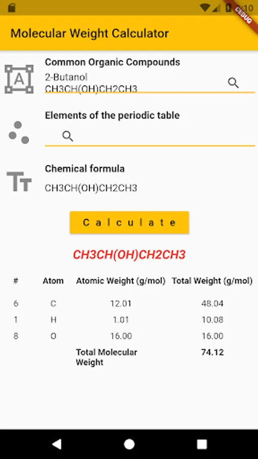 This calculator you can use for calculate the average molecular weight of molecules by entering the chemical formula. Also you can choose by one of tow drop downs, which contains common organic compounds and all the elements. The calculator will recognize formula you typing and also handle the bracket levels.