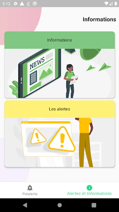 The Innodation Pre-Alert is a mobile application that will be used to send warning information to the population based on the messages received from the latter. All its actions will be done through the following features: