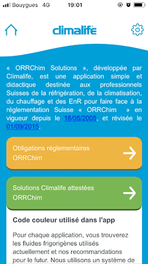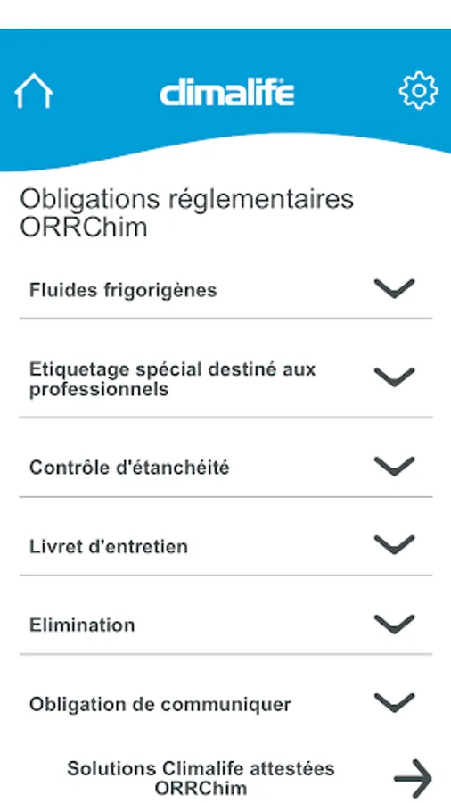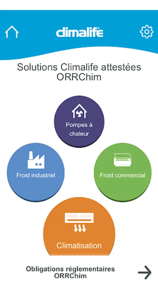 "ORRChim Solutions", developed by Climalife, is a simple and didactic application for Swiss refrigeration, air conditioning, heating and renewable energy professionals to cope with the Swiss "ORRChem" regulation in force since 18/05 / 2005, and revised on 01/09/2015.