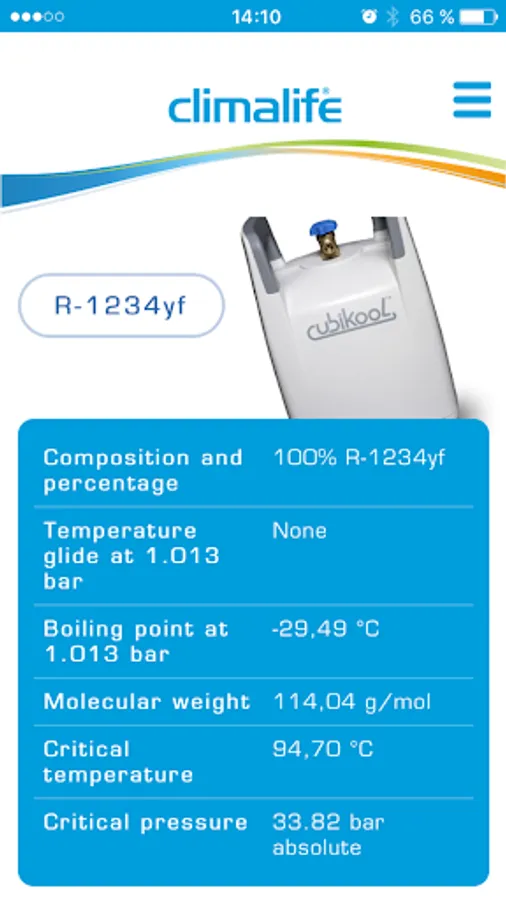 In addition, the app details refrigerant compositions, temperature glide, boiling point and molecular weight.