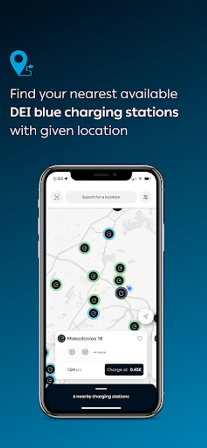 • Find the available chargers near you on the map and see navigation information / instructions.