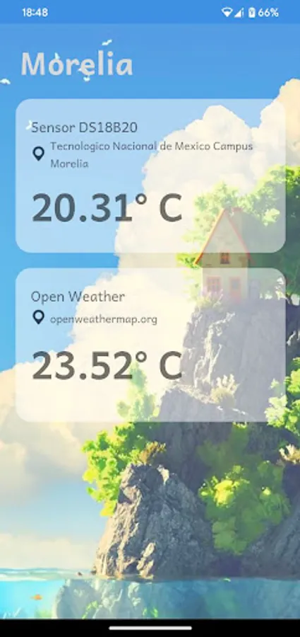 This app shows the comparison between the temperature obtained from a DS18B20 temperature sensor located at the Tecnológico Nacional de México Campus Morelia and the service of an OpenWeather API