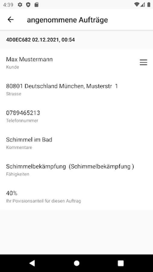 As an order sender, you have the option of asking the fitter to contact the customer by phone. He receives a push message in the app and has the option to confirm it.