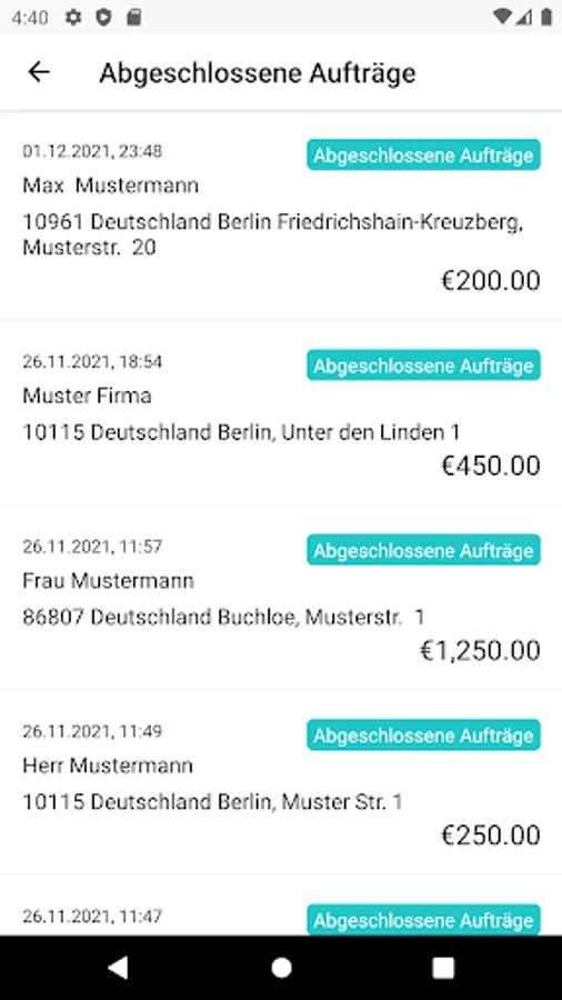 The transfer of orders is transmitted in real time to registered users in the postcode order area. The orders are sent to the respective service provider via push notification.