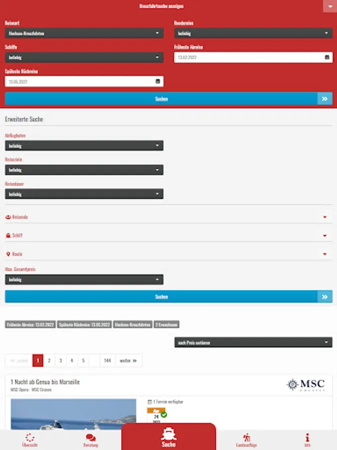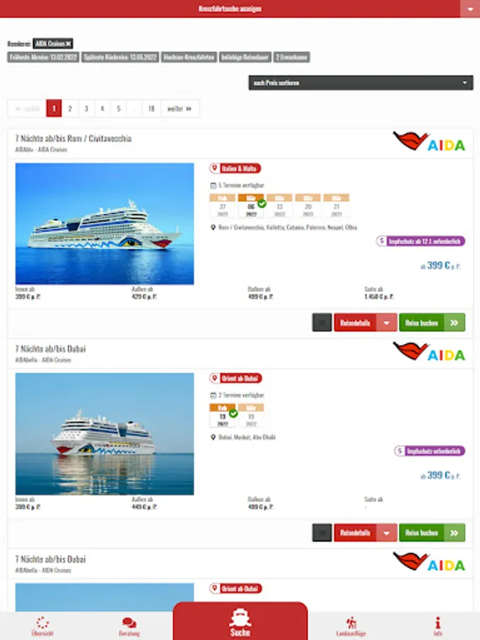 The cruise pilot offers the opportunity to search for and book cruises from numerous well-known shipping companies using an iPhone or iPad.