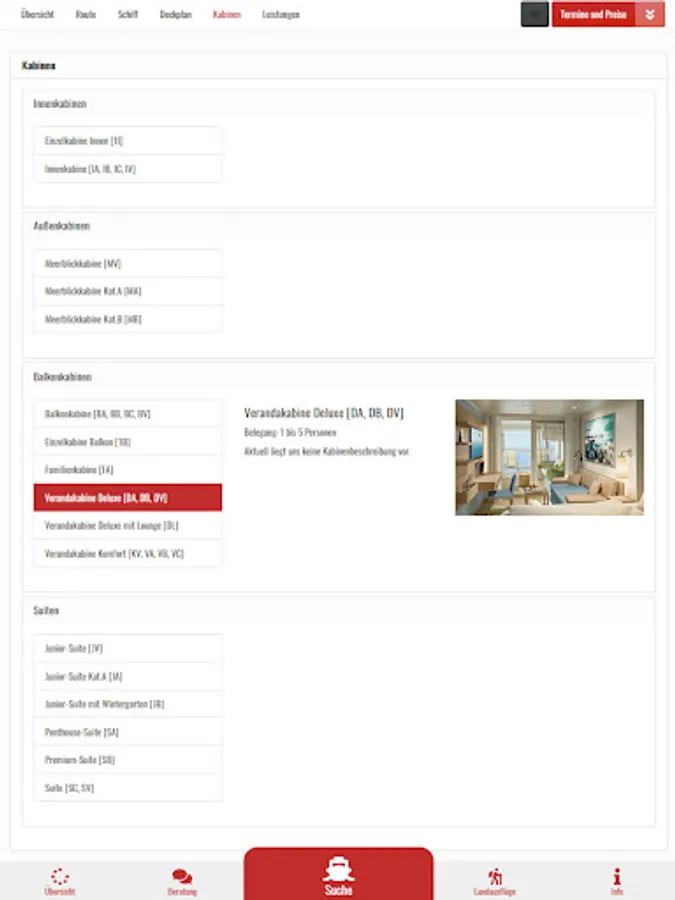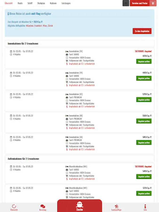Of course, depending on the tariff, the desired cabin can also be selected via the cruise controller.