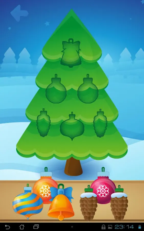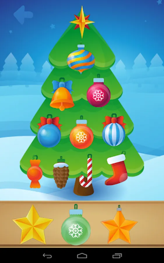 This app not only brings joy to children and acquaints them with the various Christmas symbols and figures, but also teaches them to distinguish between the various shapes and how to correctly place them on the tree.