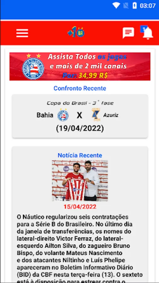 Get access to the results of matches in real time, See the best news from Bahia first hand.