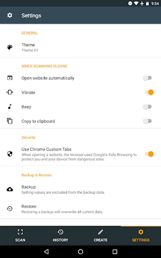 • Location: request when creating a QR code with geo location information or request when scanning nearby WiFi networks