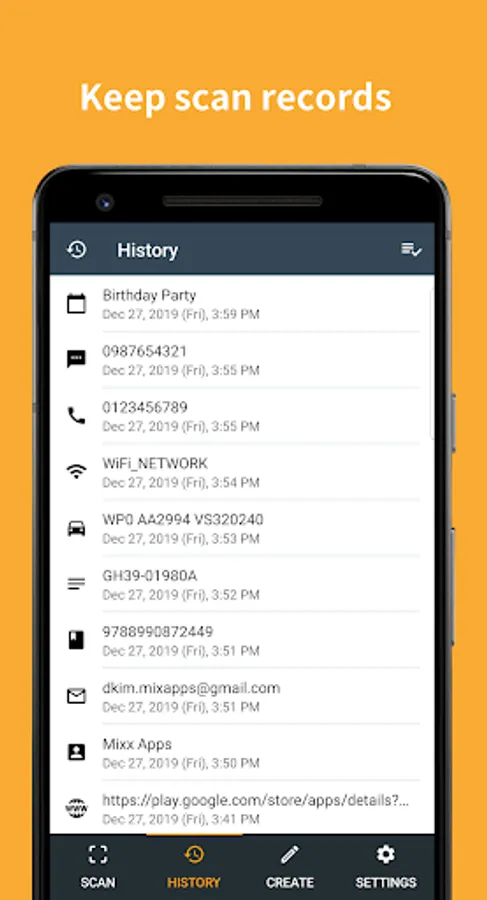To scan a QR code or barcode, simply open the app, point the camera at the code and recognize the code without pressing any button.