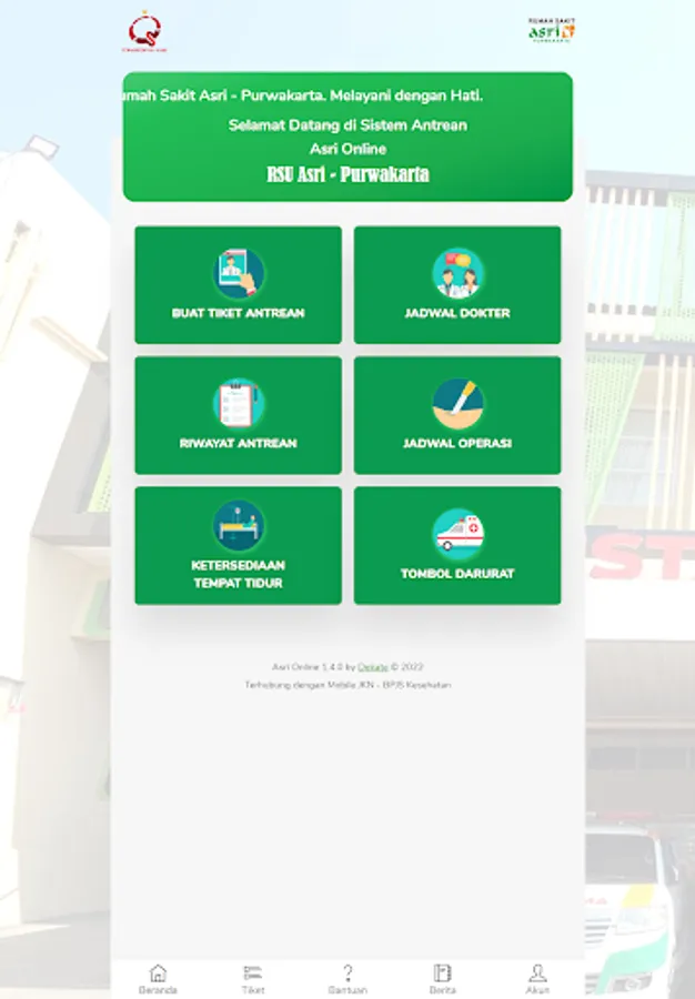 Asri Online is a mobile application that offers convenience and ease in scheduling your visit (Online Queue), as well as to obtain the latest information regarding Doctor's Office Schedules, Inpatient Bed Supplies, Operation Schedules and Ambulance Orders, anytime and anywhere.