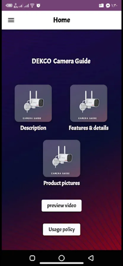 By using the DEKCO Camera Guide app, users acknowledge and agree to abide by this usage policy. DEKCO Camera Guide reserves the right to update or modify this policy at any time without prior notice. It is the responsibility of users to regularly review the policy to ensure compliance.