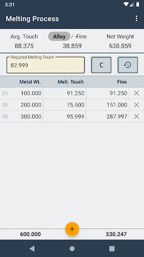 Making gold or Silver ornaments for goldsmith is take much time when doing melting and calculate touch. Now, no more a waste of time!! Use this app and you will find easy for your Gold melting calculation. Now calculate gold/silver melting is so easy with this app.!