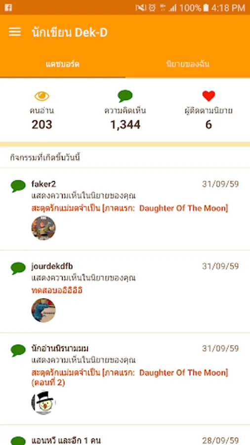 An application especially for writers! Write novels and check daily statistics. Whether the number of readers of novels, new comments Or the number of followers of our novels Including fiction sales statistics Guaranteed. Never miss a story about your novel.