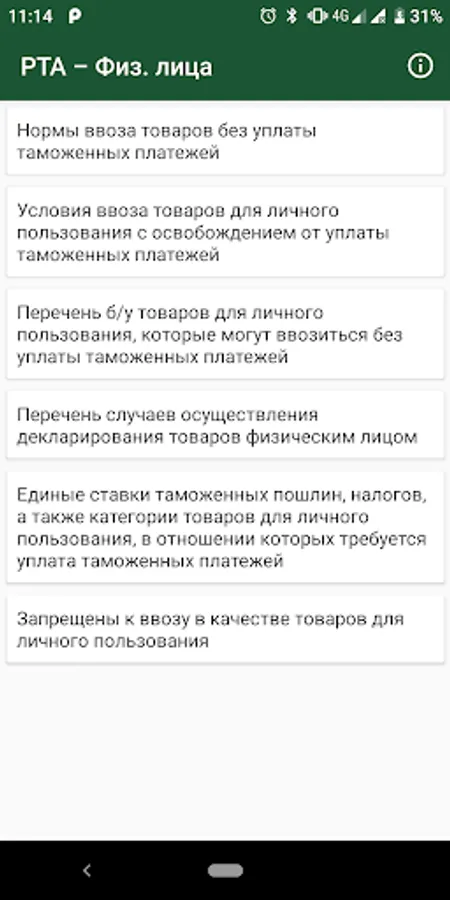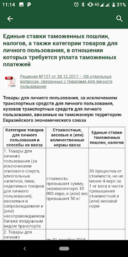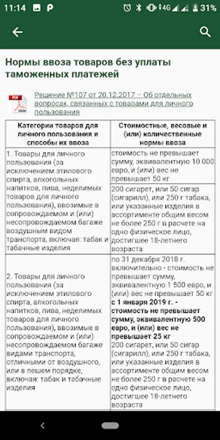 Mobile application for informing individuals about the rules for moving across the EAEU customs border