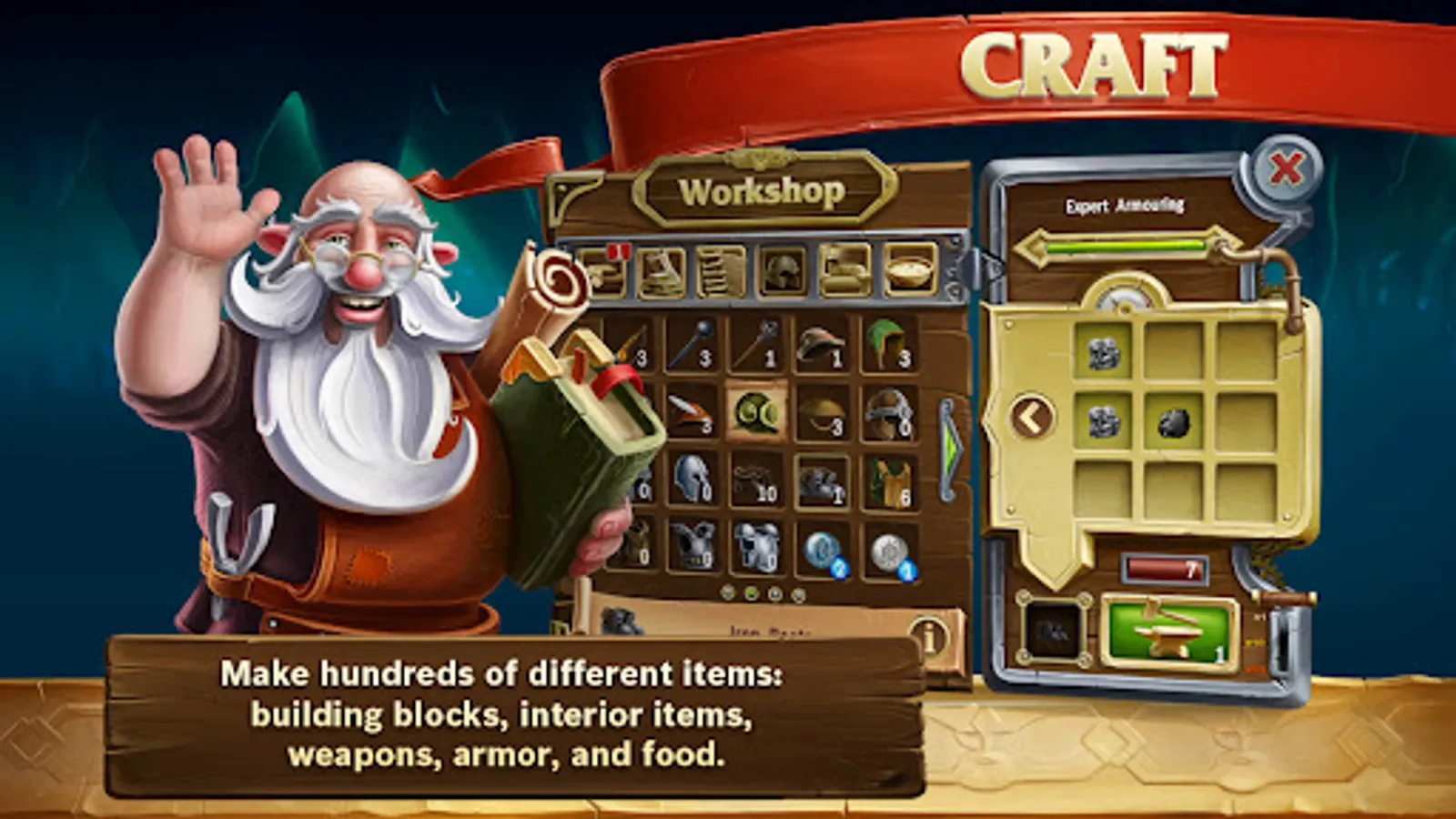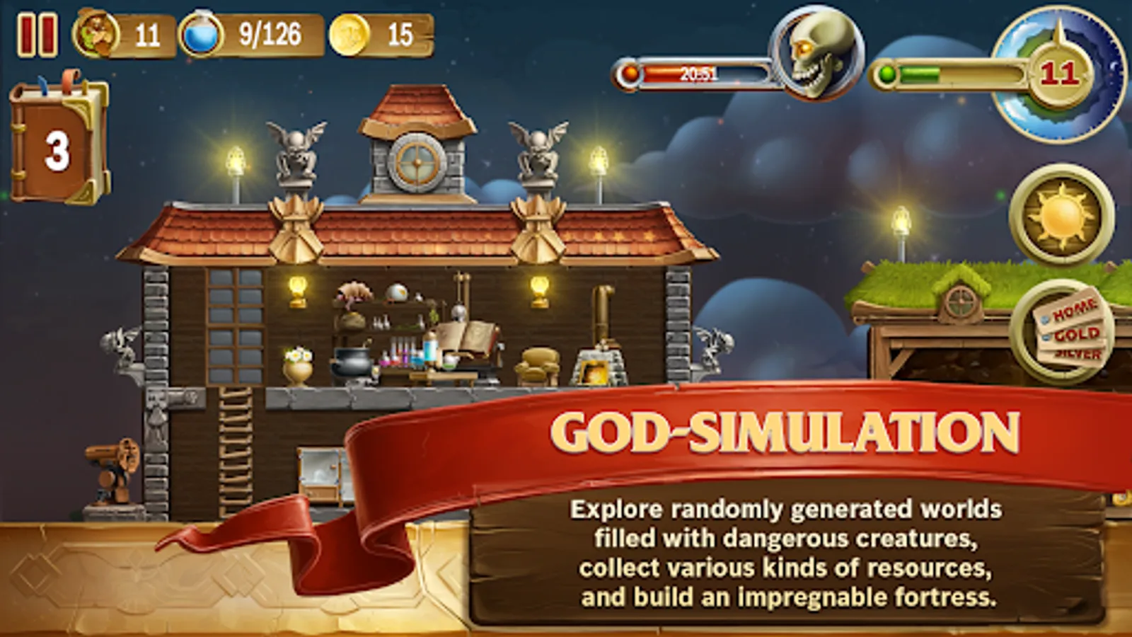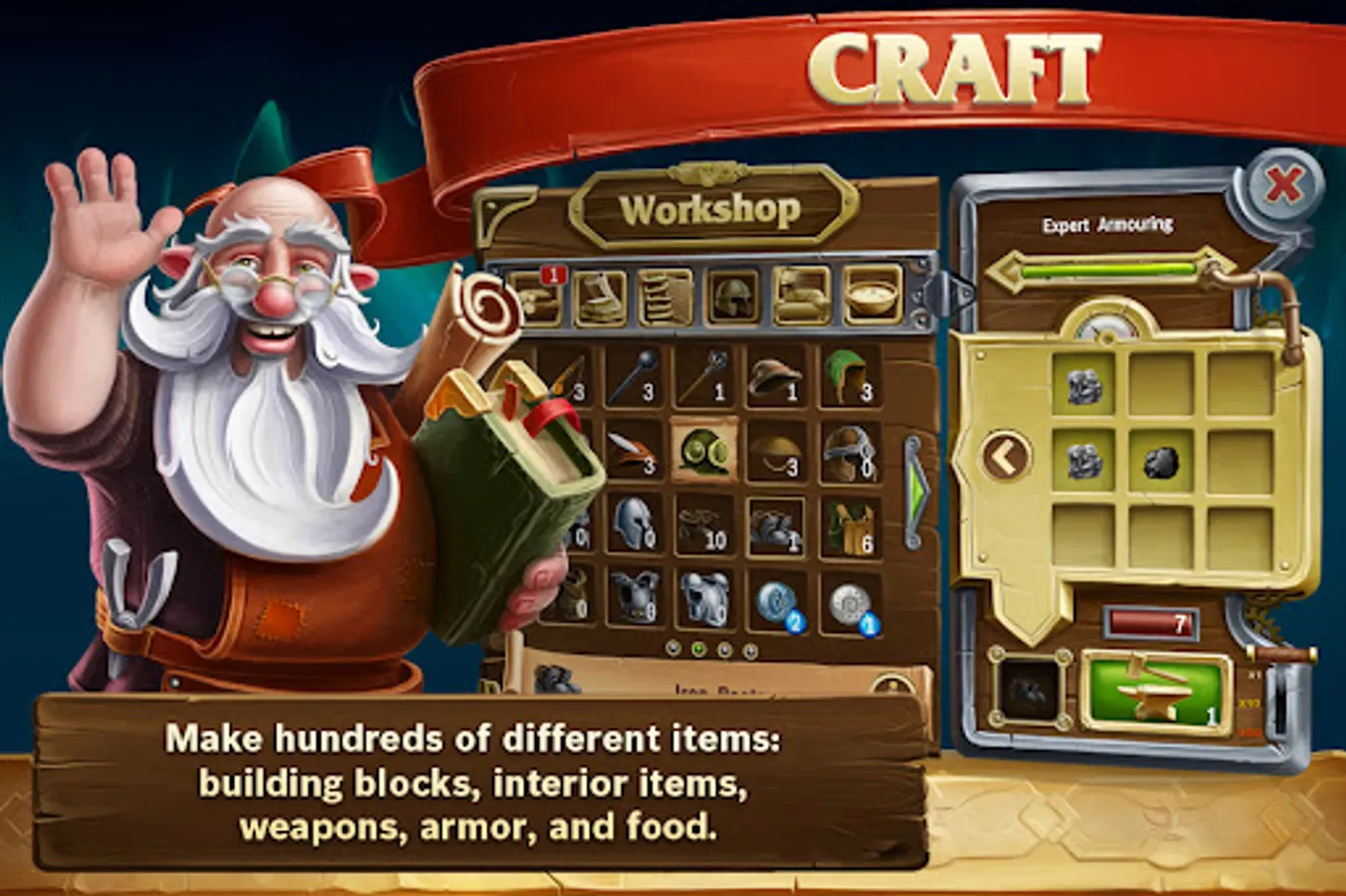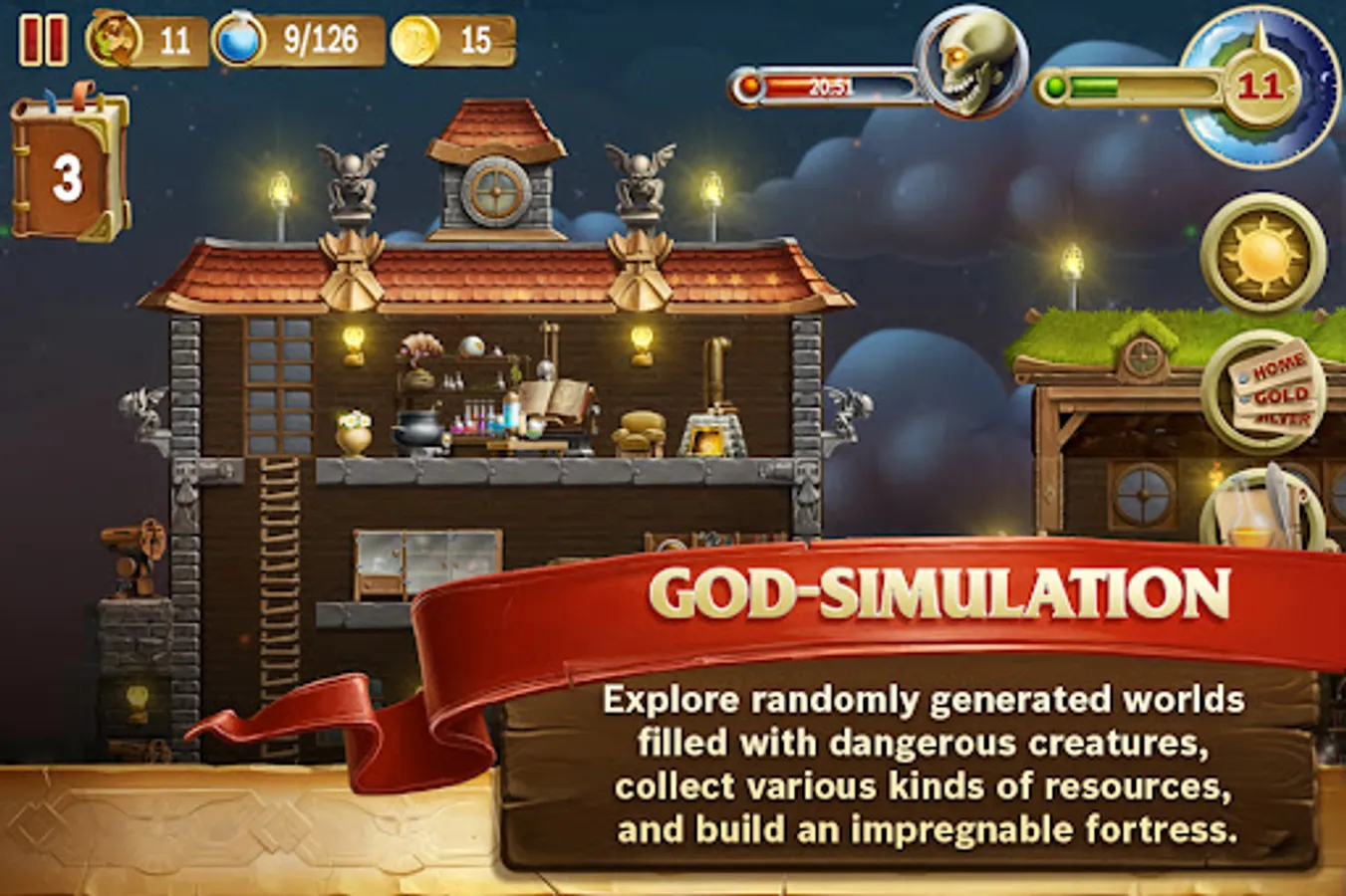 At the outset you find the recipes for basic tools and items, and build a small house with places to sleep and eat. Then, the size of the tribe increases and catches the attention of other inhabitants of the world. Most of them are night creatures and dwell underground. The worlds are full of fantasy creatures like zombies, skeletons, goblins, beholders, ghosts, giant spiders, and others. Some of them pay little attention to the dwarves, as long as the dwarves do not come into their field of vision. Others gather into quite large groups and try to break into the dwarves’ residence.