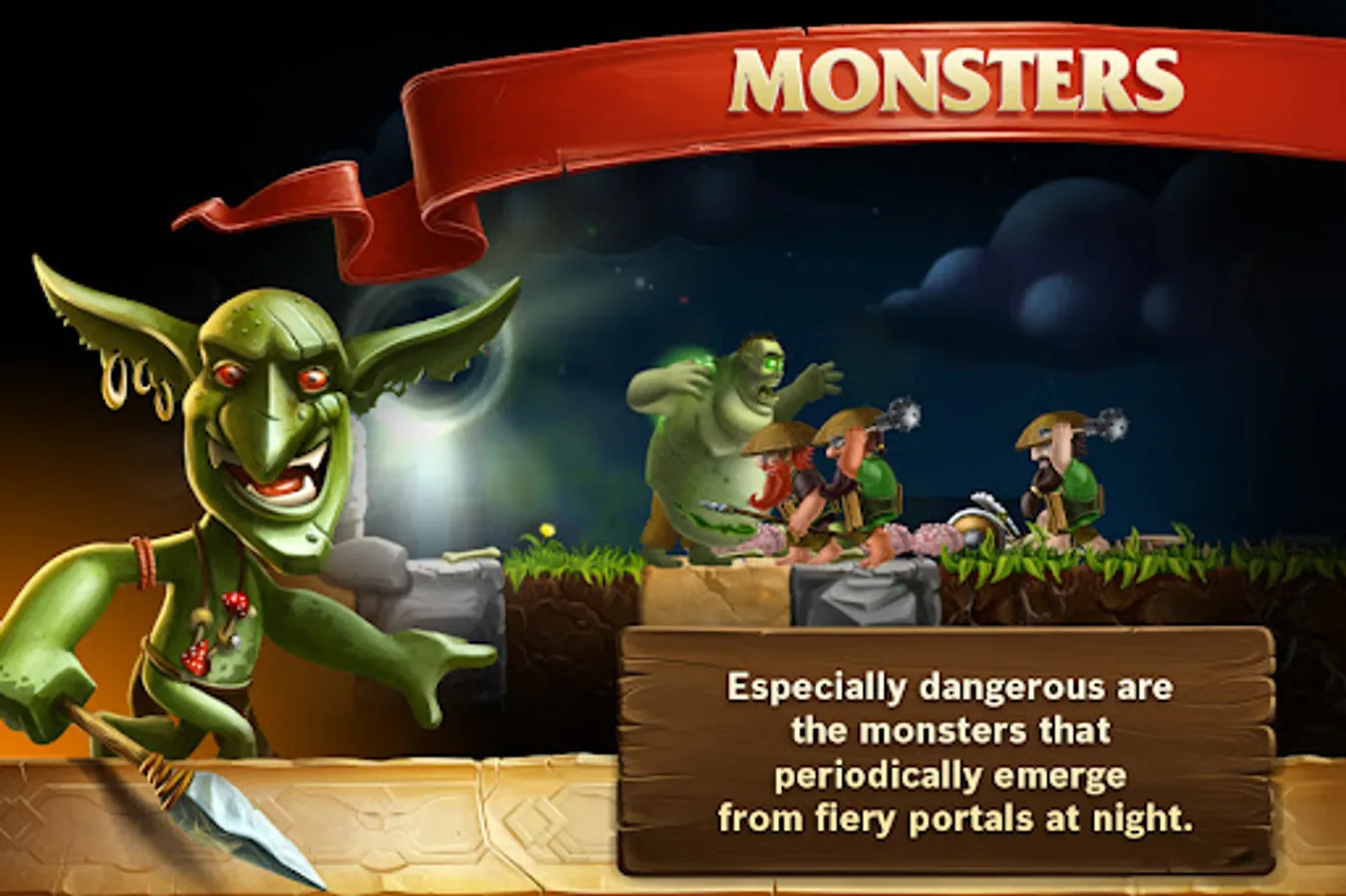 Especially dangerous are the waves of monsters that appear from time to time from portals. So, do not neglect to build a safe haven with strong walls and numerous trapdoors, cells, firing towers, and secret passageways.