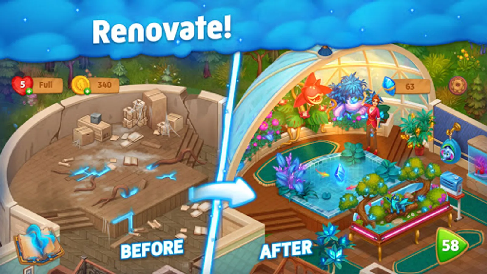 Beat colorful match-3 levels to restore the school of magic to its former glory. Wonders and adventures start right from the doorstep!