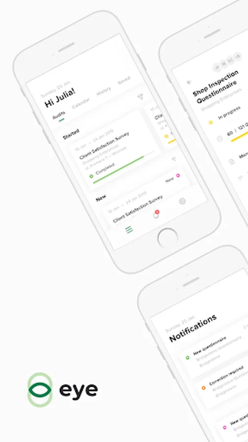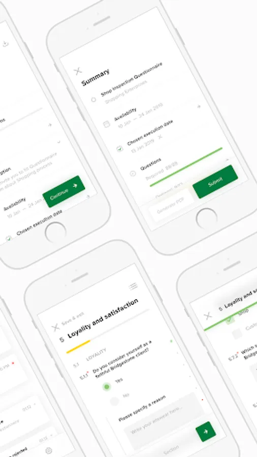 - Offline use (an internet connection is necessary to install the application/receive the questionnaires assigned to you and to send the results back for processing)