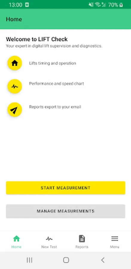 With LIFT Check, you can validate the condition of your elevator in just one elevator ride and independent of the manufacturer. Simply place your smartphone on the elevator floor and perform an elevator ride.