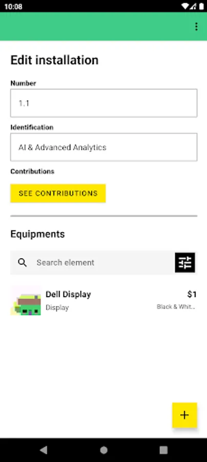Last you can add for each installation all the equipments it contains.