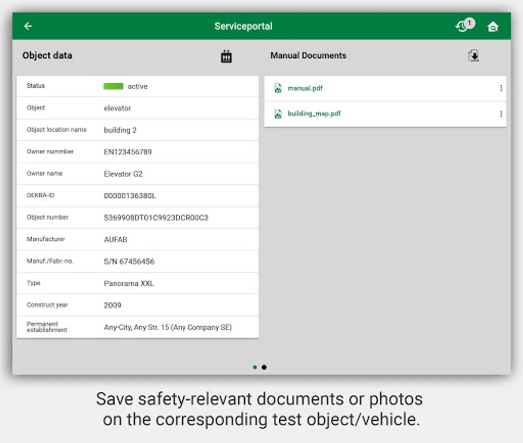 - Upload photos and documents directly to the test object or vehicle and retrieve your manual uploads from the web portal