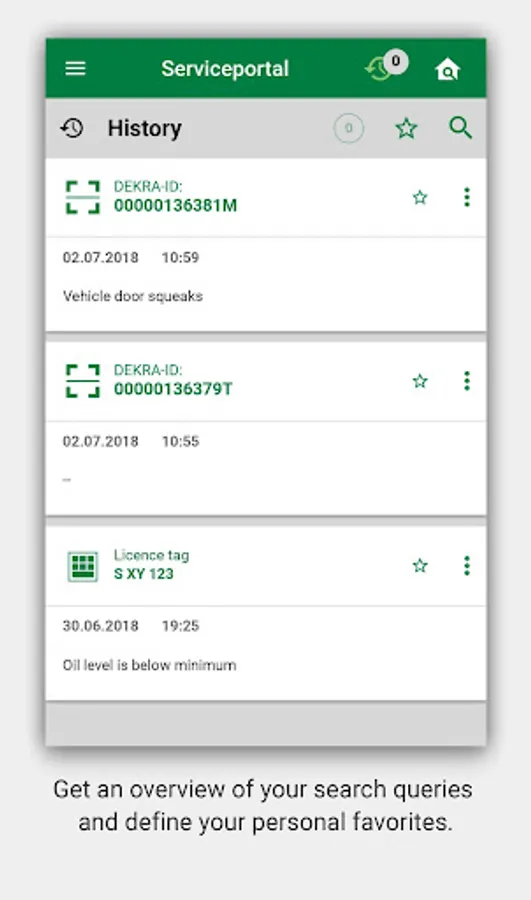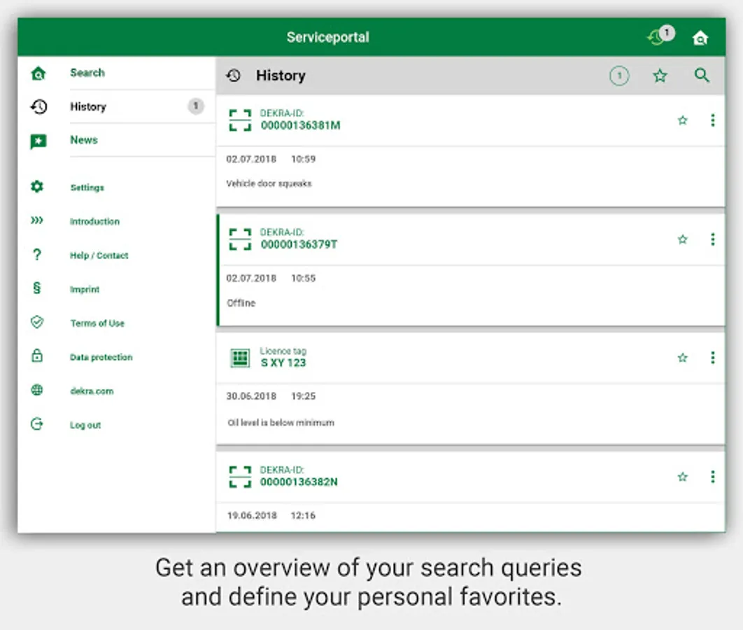 - With the offline function you can also save your search queries without an Internet connection and retrieve the data from the DEKRA servers at a later point in time
