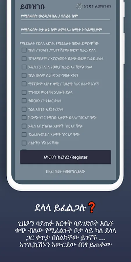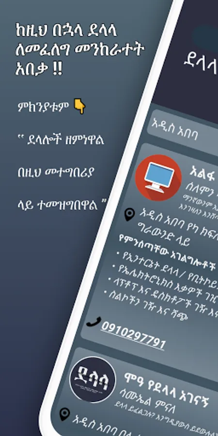 ደላላ ኖት? አሁኑኑ ይመዝገቡ! ደላላ ይፈልጋሉ? አሁኑኑ ጭነው ዘመናዊ ደላላ ቀጥታ በስልካቸው ያግኙ