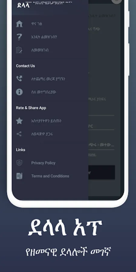 ደላላ ከሆኑ ይህን አፕሊኬሽን ተጠቅመው ራስዎን እና የሚሰሩትን የድለላ አይነት ለሚሊዮኖች በማስተዋወቅ የስራ እድሎን ከፍ ያድርጉ። በዚህ አፕሊኬሽን ላይ ተጠንተው የተቀመጡ ከ20 በላይ የድለላ አይነቶች የተዘረዘሩ ሲሆን እርሶም ከነዚህ የድለላ ስራዎች ውስጥ የሚሰሩዋቸውን ከ7 ያልበለጡ ድለላዎችን በመምረጥ ከዛም ስሞን እና አድራሻዎን እንዲሁም በዋነኝነት ስልክ ቁጥሮን በመሙላት ተመመዝበው ራስዎን ያስተዋውቁ። በቀጣይም በእርሶ አካባቢ ማለትም ሲመዘገቡ በሞሉት አካባቢ የሚገኙ ደላላ ፈላጊዎች እርሶ ከሚሰጡዋቸው የድለላ አይነቶች ውስጥ ድለላ ሲያስፈልጋቸው ቀጥታ በስልክ መስመርዎ ይደውሎሎታል። እንደሚደልሉት የድለላ አይነትም ከሌሎች የኢትዮጵያ ከተሞች እንዲሁም ከኢትዮጵያ ውጭም የስራ እድሎች ሊገጥሞ ይችላል። ከኖርማል ደላላ ፈላጊ ሰዎችም በተጨማሪ በዚህ አፕሊኬሽንም በኩል እንዲጠቀሙ ስምምነት ላይ የደርስንባቸው በየጊዜው ተለዋዋጭ የሆነ የእቃ እና የሰው ሃይል ከሚያስፈልጋቸው መስሪያ ቤቶች ጋርም በጊዜያዊነት እና በቋሚነት አብሮ የመስራት እድልን ይፈጥርሎታል።