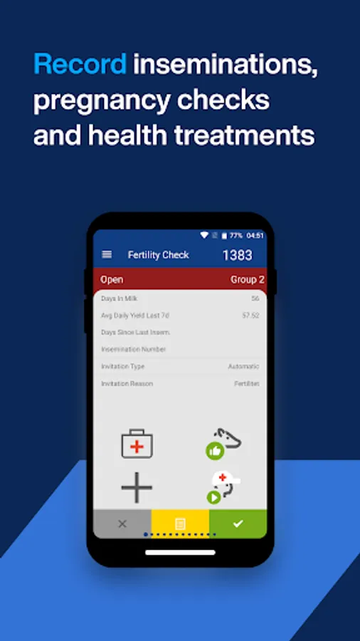 Companion helps you in your daily working routines. You can record and track important events such as an insemination, pregnancy check or health treatment in real time.