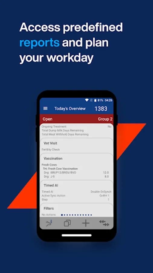 Do you need a calving, dry-off or insemination report? All those are ready in your pocket. Access predefined reports from DelPro FarmManager and be able to use them from your app.