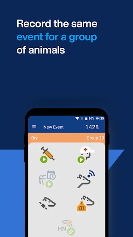 Record the same event with the same results on multiple animals at once. Add a dry-off, group change and treatment in one step.