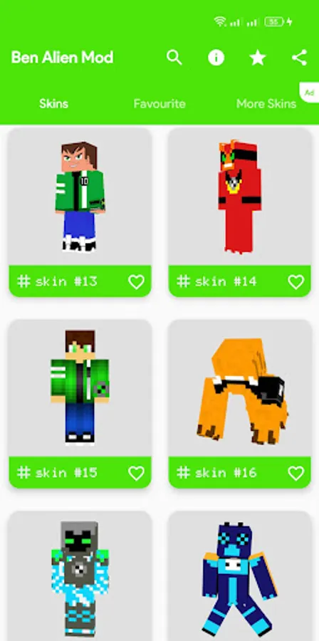 The app provides an intuitive browsing experience, allowing you to explore and preview different Ben alien 10 skins before selecting the perfect one for your Minecraft adventures. Once you've made your choice, downloading and applying the skin to your Minecraft PE character is a simple and seamless process.