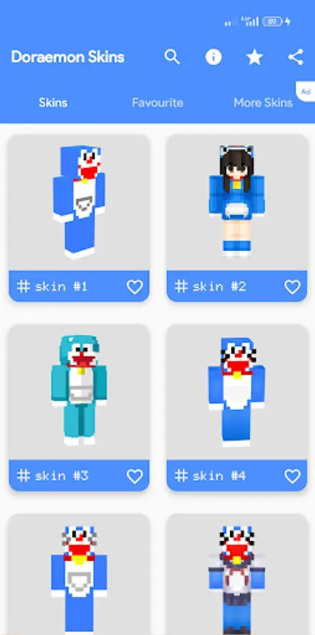 Navigating through the app is intuitive and user-friendly, allowing you to browse and preview different Doraemon skins before selecting the one that best represents your love for his content. Once you've found the perfect skin, you can effortlessly download and apply it to your Minecraft PE character with just a few taps.
