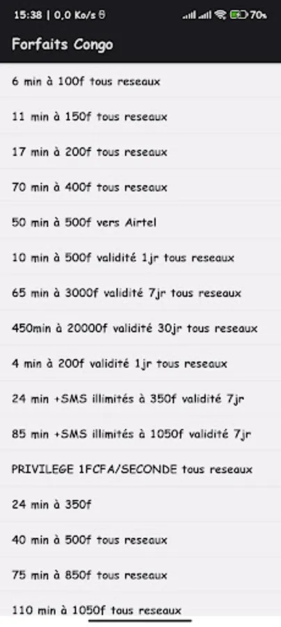 Congo Packages is an application that provides quick and easy access to all mobile plans of all Networks in the Republic of Congo.