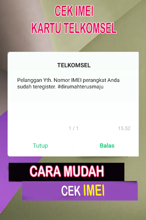 - This application contains a tutorial to check whether your IMEI Smartphone is already registered in the Ministry of Industry Database.