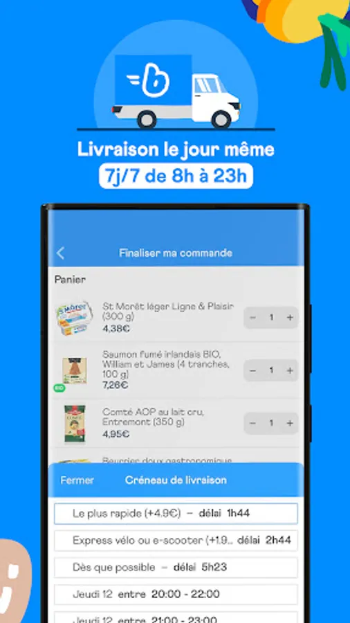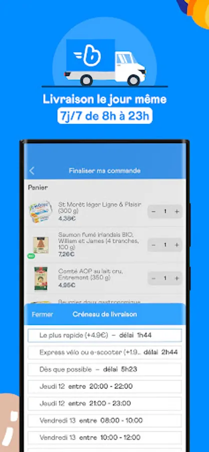 Take advantage of free shopping delivery (from €35 of purchase) the same day or at the time slot of your choice, from 7 a.m. to 11 p.m. Practical, Bam Courses is your shopping cheaper than going to the store.